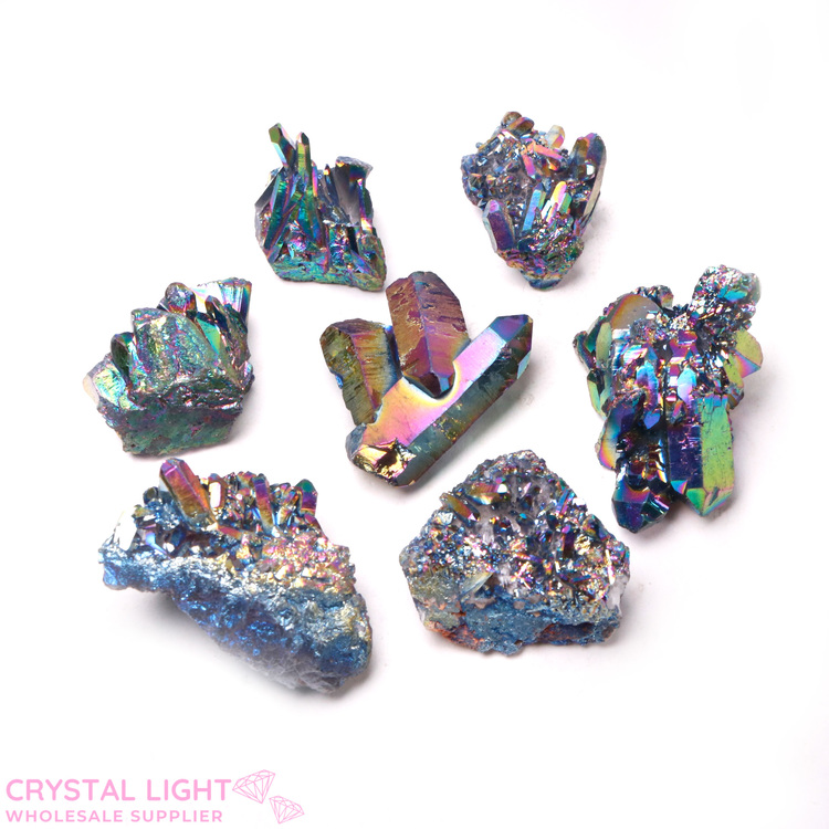 Titanium Aura is a form of Quartz combined with titanium (the metal of power) by bonding titanium oxide onto its surface. Titanium quartz amplifies and magnifies healing energy and clears and cleanses chakras. It helps to amplify both body energy and healing thoughts.