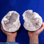 Geodes can be identified in abundance of crystal types, and have the characteristics of an inner crystal cavity. Geodes are usually crystals that have been opened or cut into halves to reveal its unique interior.