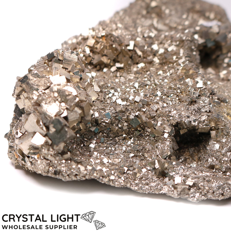 Pyrite, or iron pyrite is an iron sulphide. This mineral's metallic luster and pale brass-yellow hue give it a superficial resemblance to gold, hence the well-known nickname of "Fool's Gold." Pyrite is believed to stimulate intellect and the skill to recall information. Pyrite is known as a very protective stone, shielding the user from negative energy of all kinds.