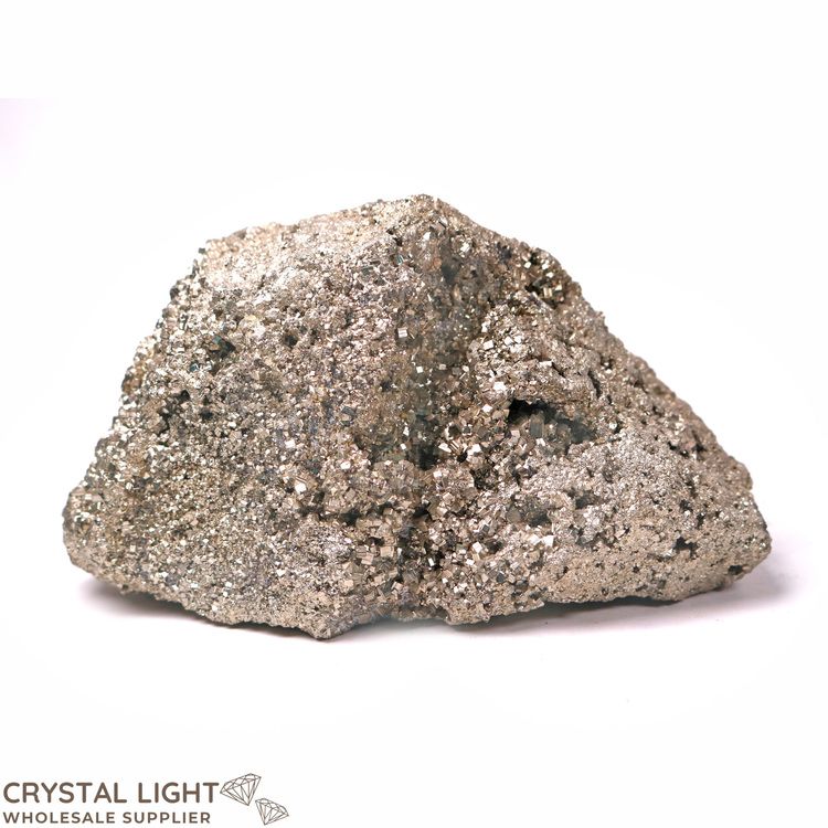 Pyrite, or iron pyrite is an iron sulphide. This mineral's metallic luster and pale brass-yellow hue give it a superficial resemblance to gold, hence the well-known nickname of "Fool's Gold." Pyrite is believed to stimulate intellect and the skill to recall information. Pyrite is known as a very protective stone, shielding the user from negative energy of all kinds.