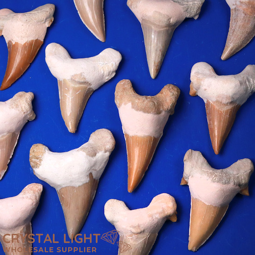 Please note that the roots of these Otodus teeth have been restored with plaster.