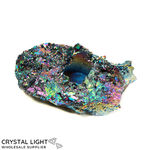 Titanium Aura is a form of Quartz combined with titanium (the metal of power) by bonding titanium oxide onto its surface. Titanium quartz amplifies and magnifies healing energy and clears and cleanses chakras. It helps to amplify both body energy and healing thoughts.