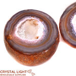 Agate is the name given to numerous varieties of banded Chalcedony, a mineral of the Quartz family. Agate is known to help enhance one’s communication as well as their analytical abilities. The believed “grounding energy” of Agate helps to make one feel secure and stable within their home, work and personal environments. Agate has beautiful natural colouring, but can also be dyed different colours. It frequently contains cavaties that may or may not be drusy.