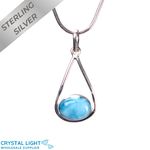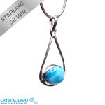 Larimar, otherwise known as "Stefilia's Stone.'' It is believed to be a stone of "answers from the sea of consciousness." The blue color of the larimar reflects the "sea" of all consciousness, which is believed to give freedom from self-imposed limitations and a sense of peace in finding truth.