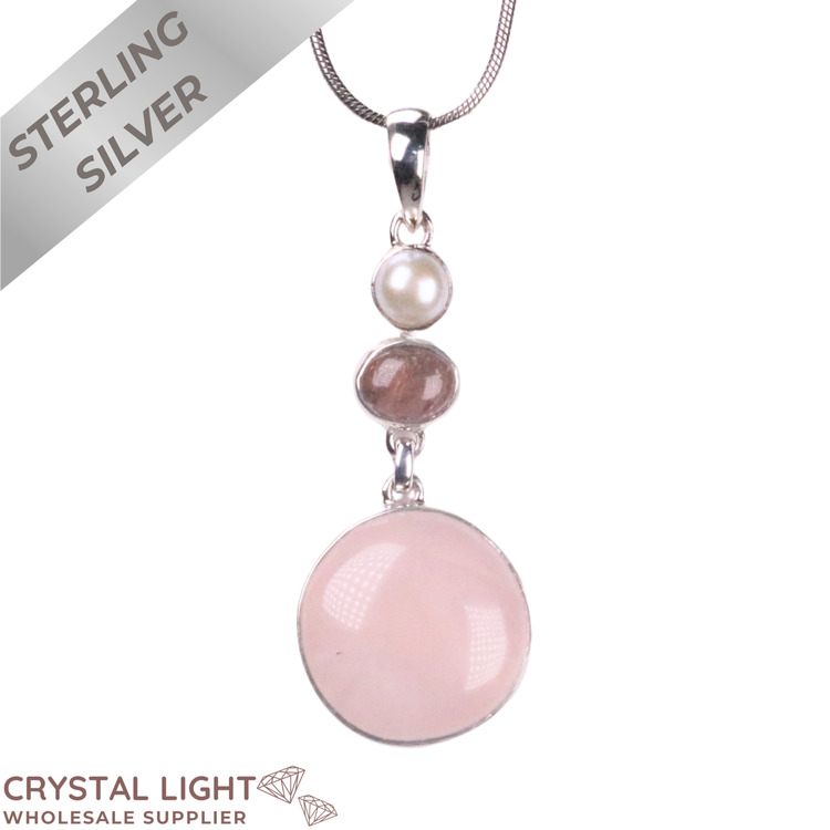 Pendant includes Pearl and Pink Tourmaline Gemstone embellishments.