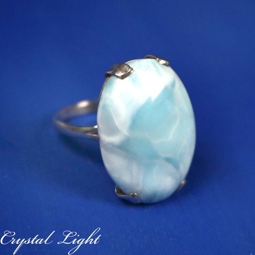 Larimar, otherwise known as "Stefilia's Stone.'' It is believed to be a stone of "answers from the sea of consciousness." The blue color of the larimar reflects the "sea" of all consciousness, which is believed to give freedom from self-imposed limitations and a sense of peace in finding truth.