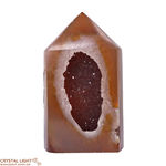 Agate is the name given to numerous varieties of banded Chalcedony, a mineral of the Quartz family. Agate is known to help enhance one’s communication as well as their analytical abilities. The believed “grounding energy” of Agate helps to make one feel secure and stable within their home, work and personal environments. Agate has beautiful natural colouring, but can also be dyed different colours. It frequently contains cavaties that may or may not be drusy.