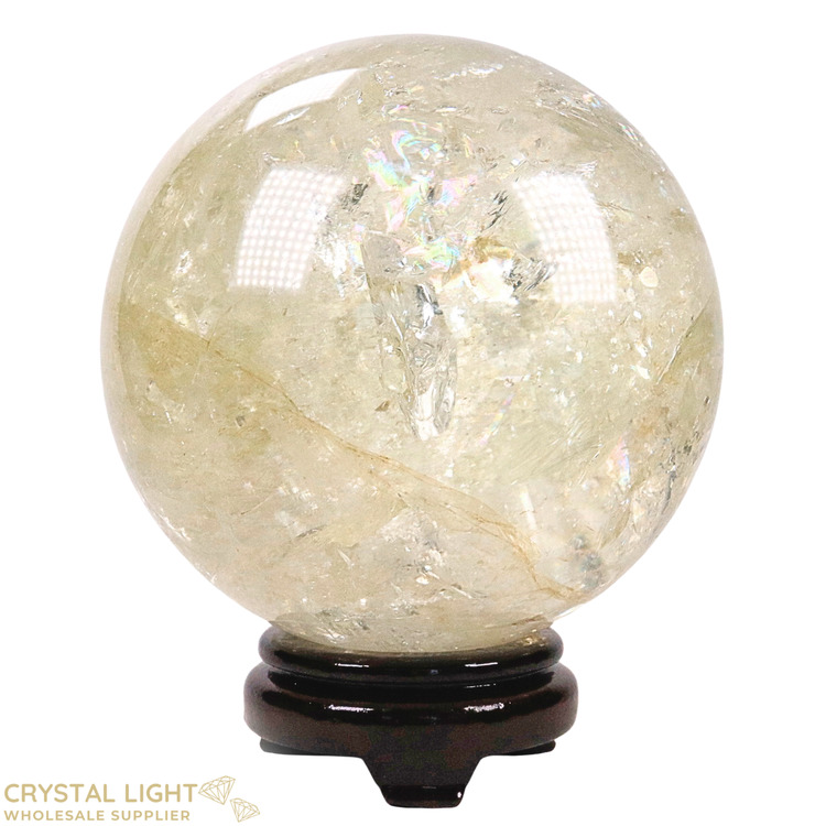 This incredible Natural Citrine Sphere has natural rainbows all throughout the center! From any angle that is displayed, it never fails to let out beautiful sparkles and emits a strong positive energy.