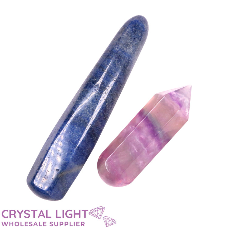 You will recieve 1 x Blue Quartz Wand, and 1 x Fluorite Point Wand. Points range from approximately 73-115mm.